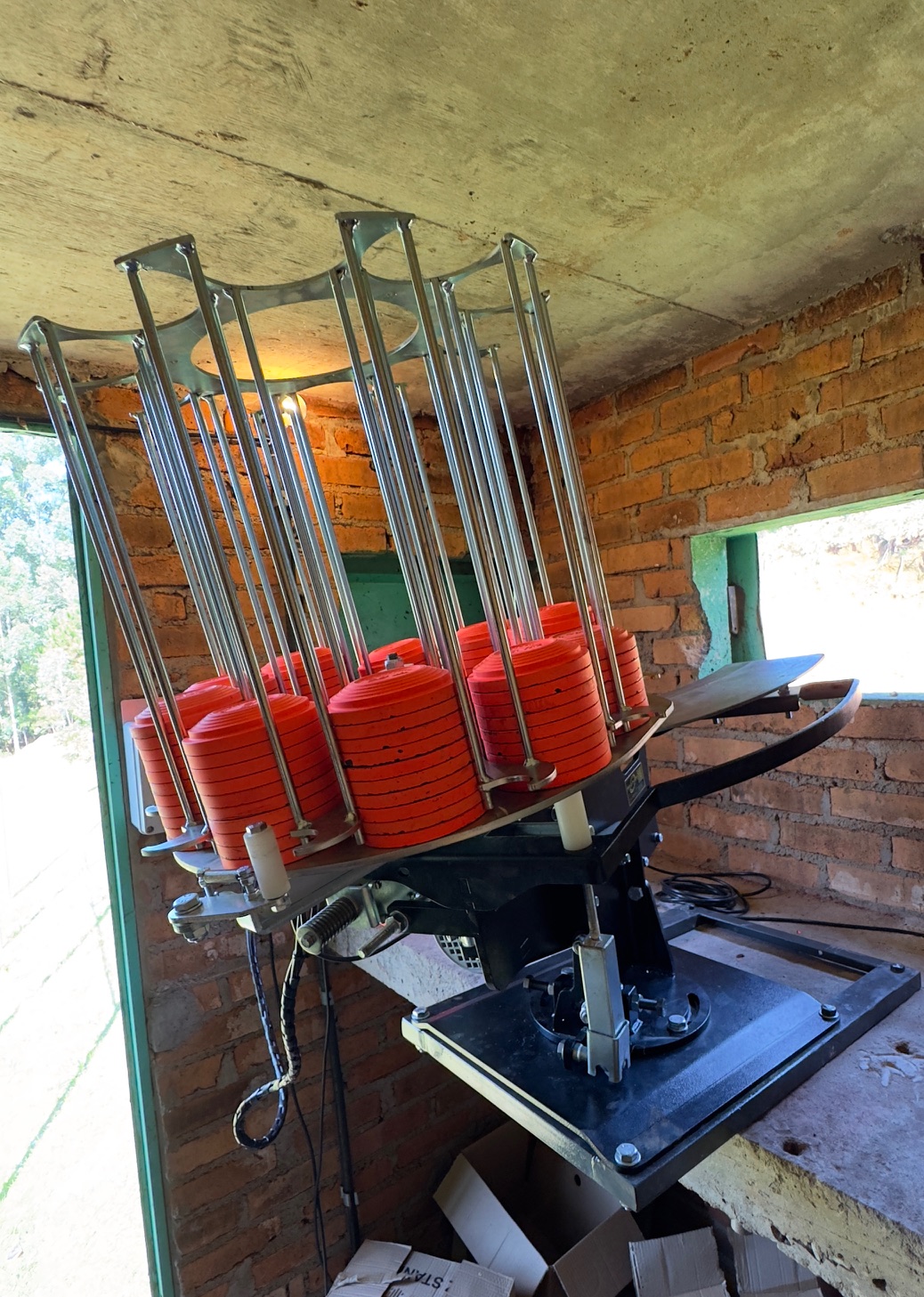 A GP-14 Skeet é uma máquina lançadora de pratos com capacidade para 400 pratos cada e com carregamento automático dos mesmos.