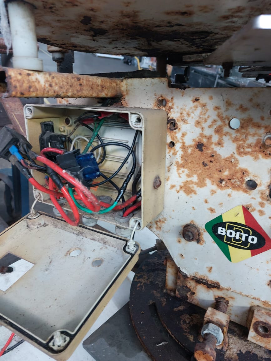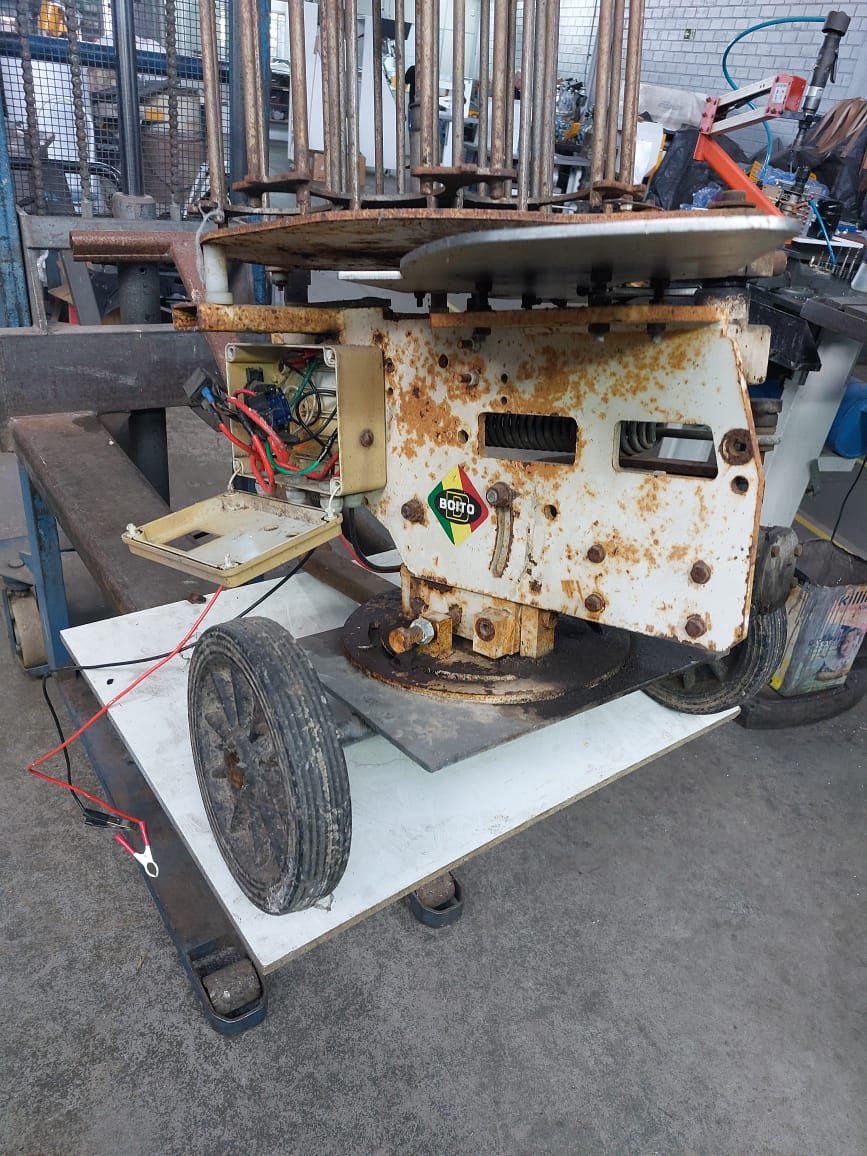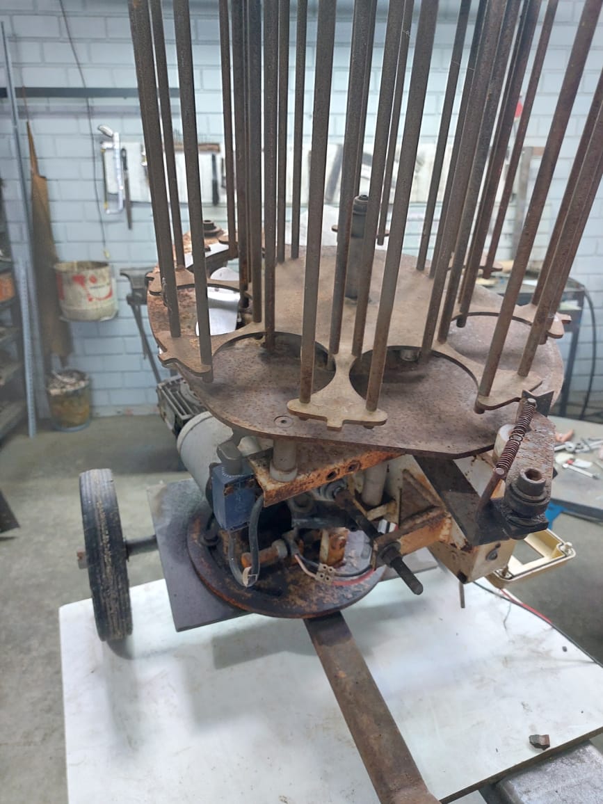Posteriormente refeito a zincagem de todas as peças não pintadas, pintura elétrostática à pó, troca de parafusos antigos por novos, revisão e troca de óleo do redutor.